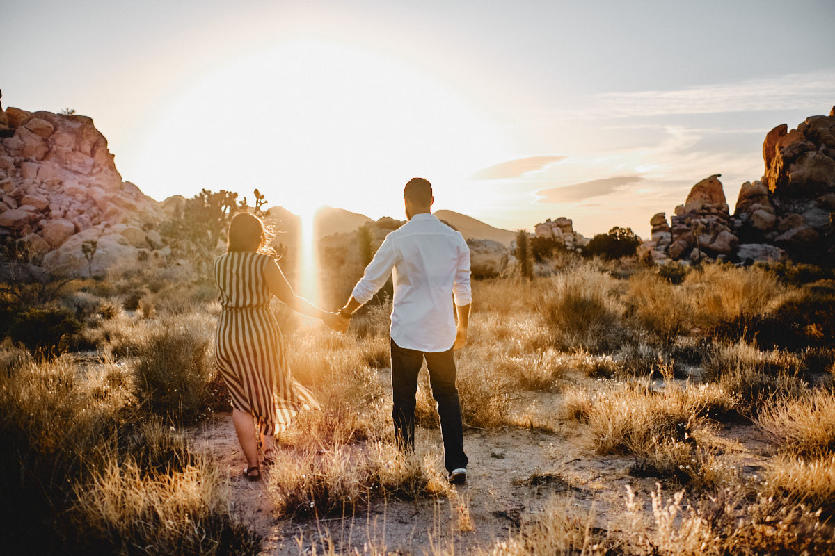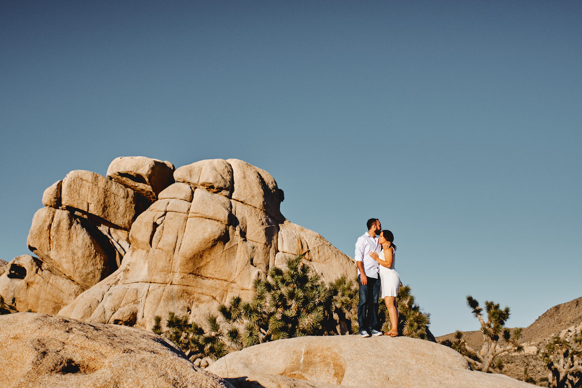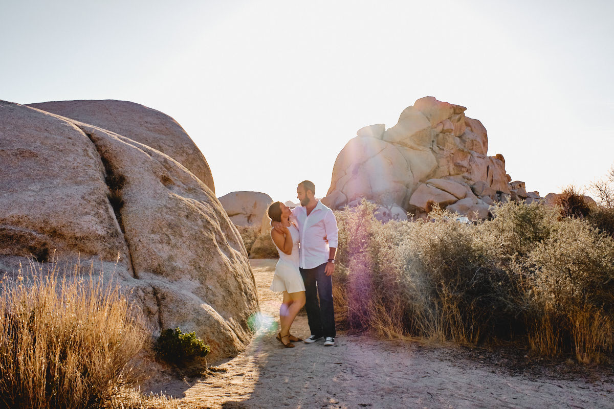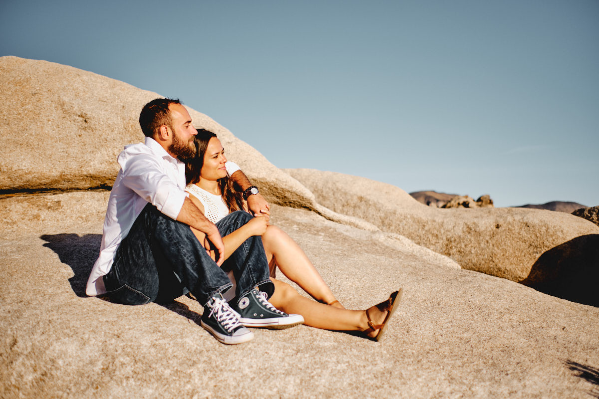 Die goldene Stunde, immer wieder die Beste Zeit des Tages um Fotos zu machen. So auch bei Liz + Ronm, umringt von Kakteen, tollen Felsformationen und warmes Sonnenlicht. Hinzu ein verliebtes Paar und etwas Wind. Perfekt. Das ist die Kurzzusammenfassung des Engagement Shootings im Joshua Tree Nationalpark. Ich freue mich immer, wenn Paare mich anschreiben, für eine Shooting. Die Beiden hatten gesehen, dass wir für eine Hochzeit in Los Angeles sind und so durfte ich ein Paarshooting der Beiden machen. An einem meiner Lieblingsorten, dem Joshua Tree Nationalpark.